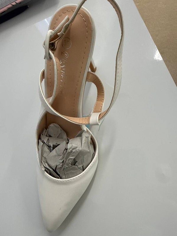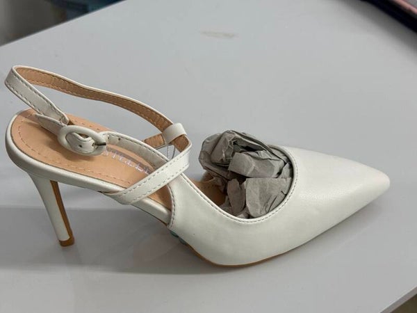 White faux leather sling back