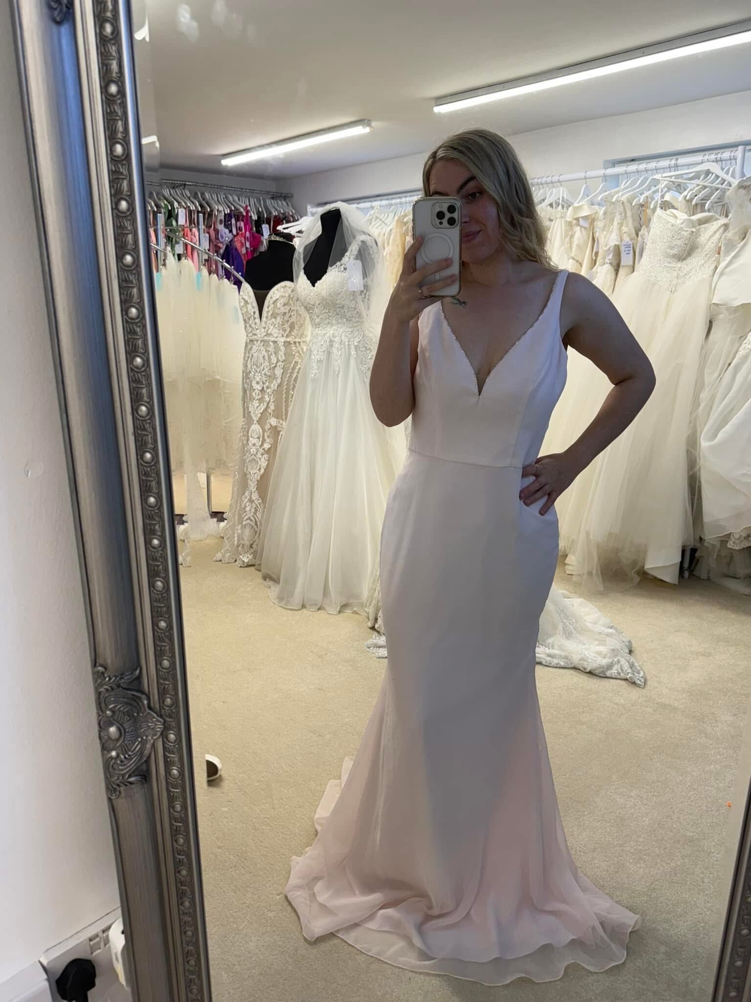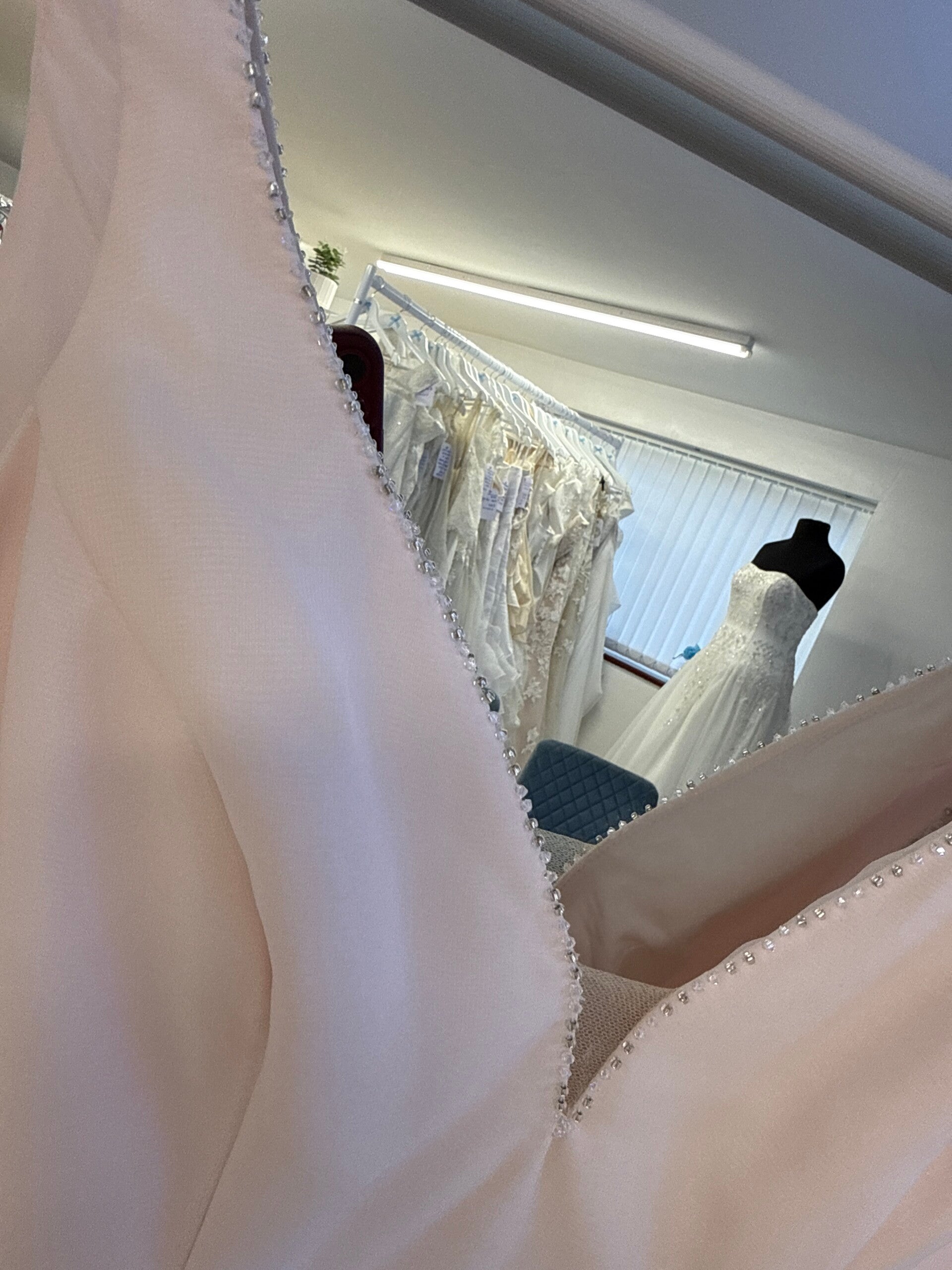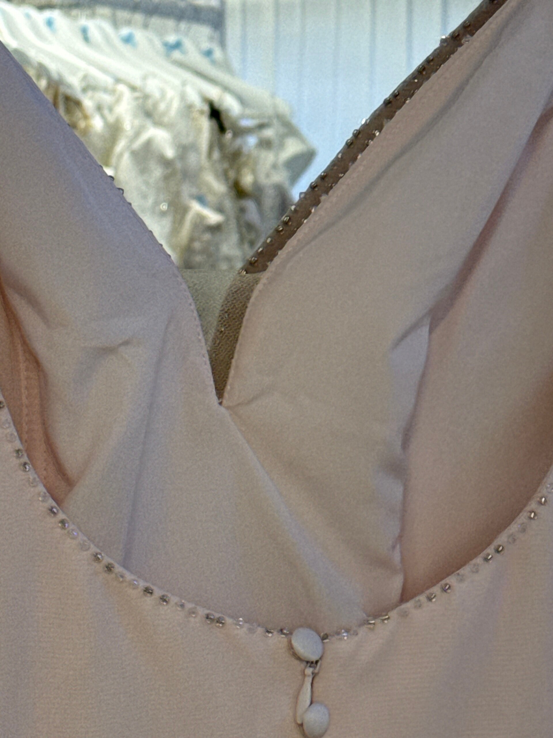 fit & flare dress with plunge v neck adorned with delicate crystals.