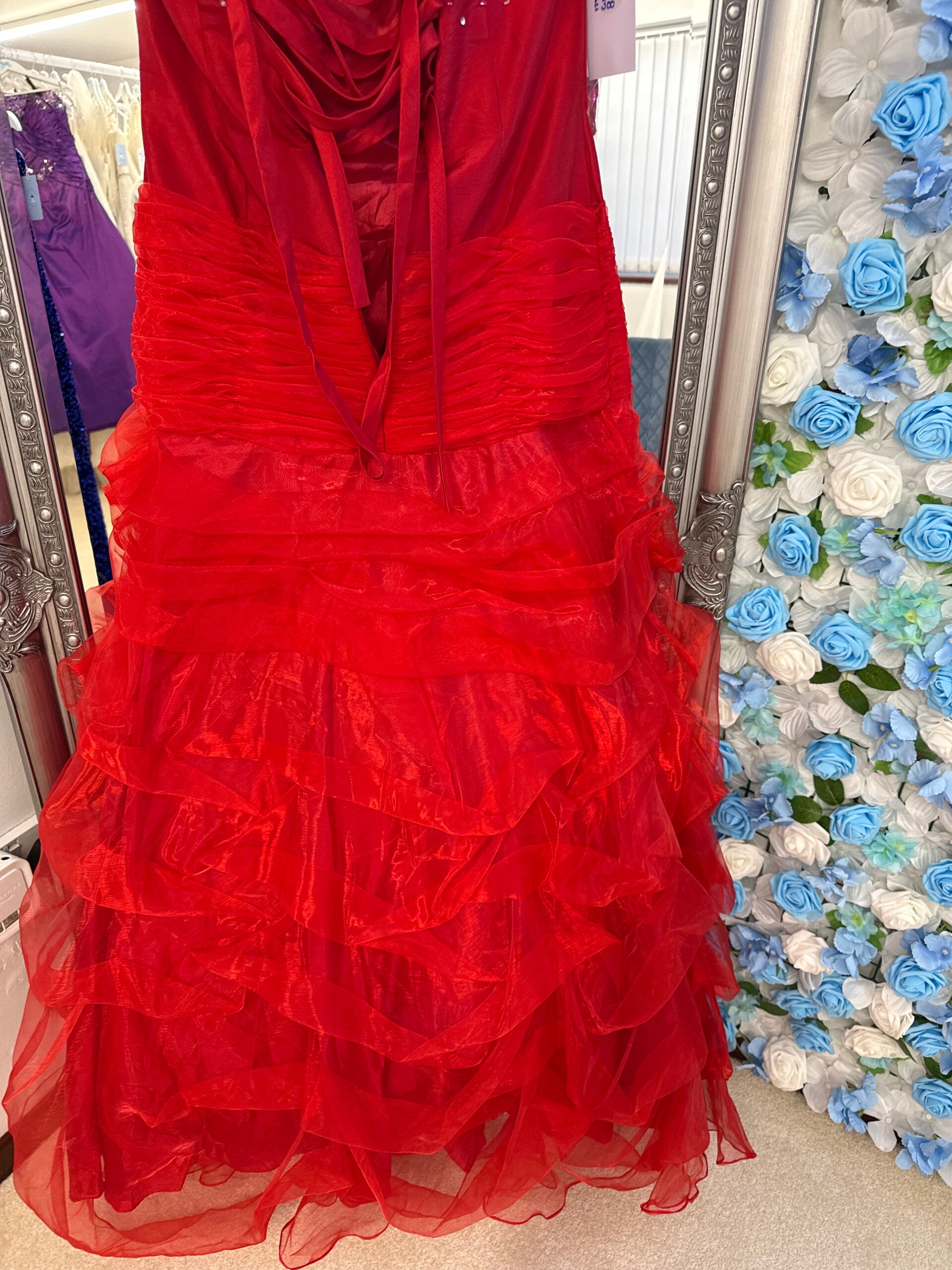 Ruffled skirt , embellished bust area.