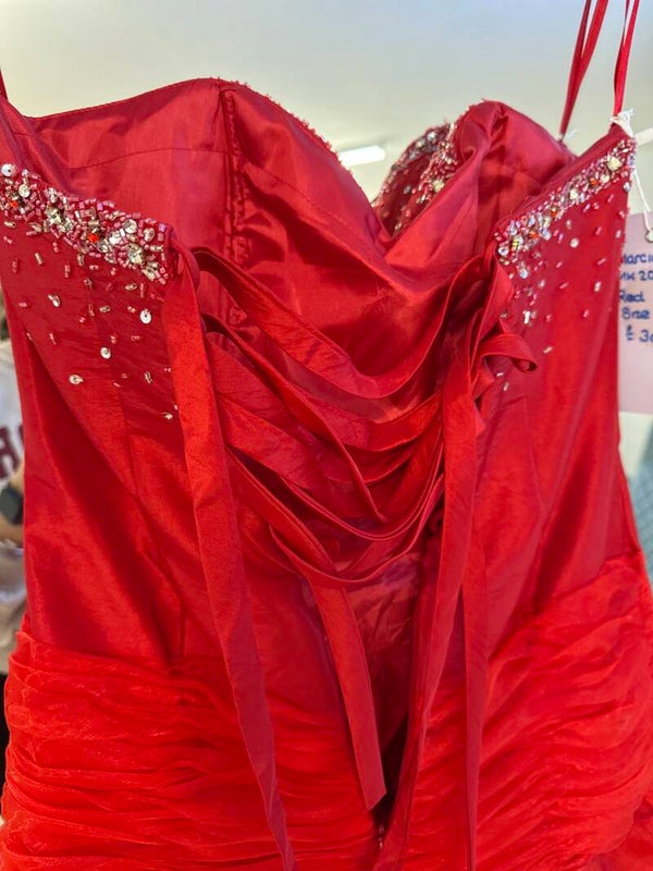 Red sweetheart neckline organza A-line dress.
