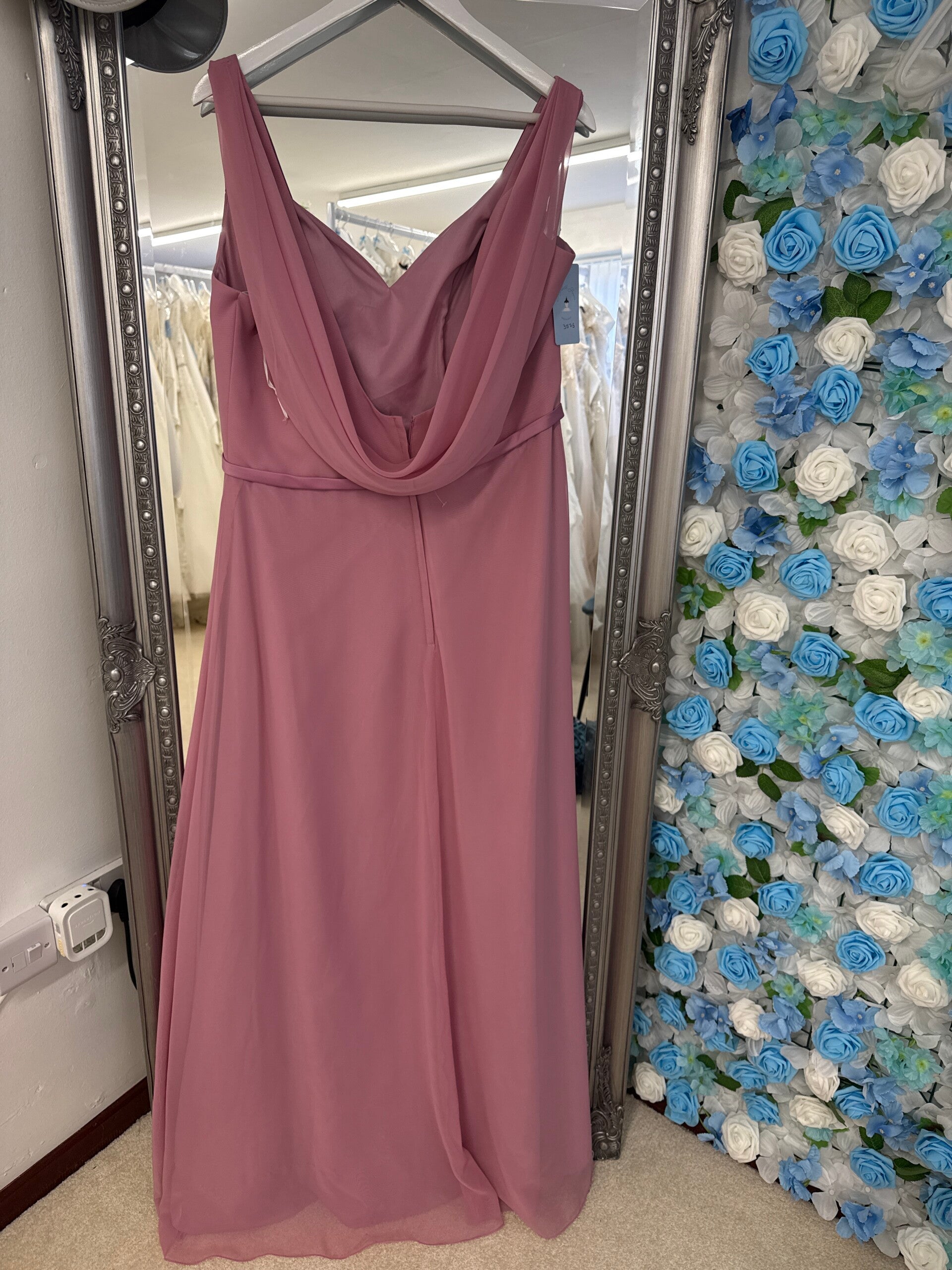 A-line chiffon dress, with cowl back, plunge v neckline.