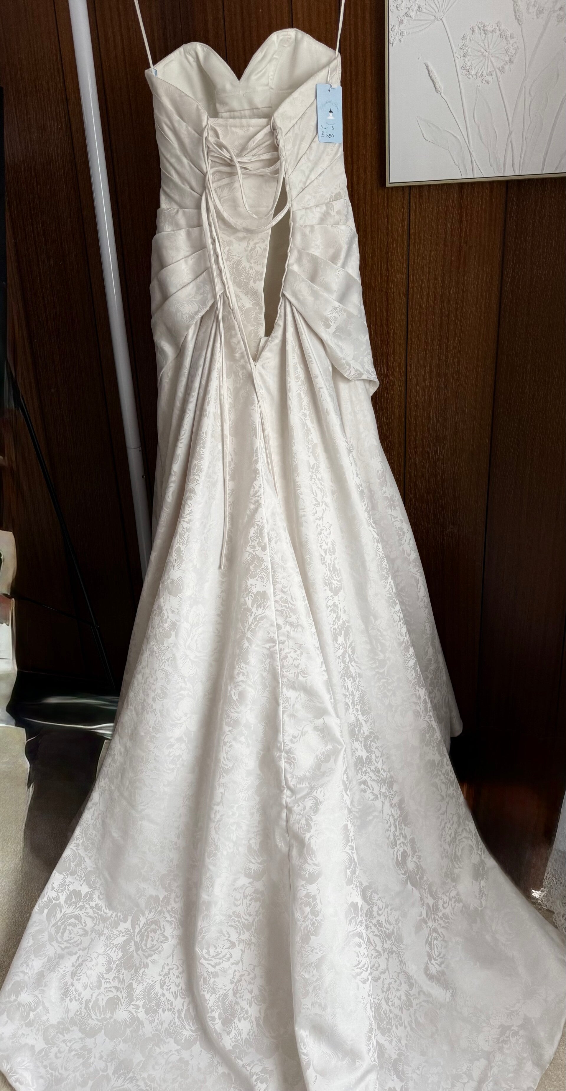 Beautiful deep ivory brocade A-line, with v neck and ruched bodice.